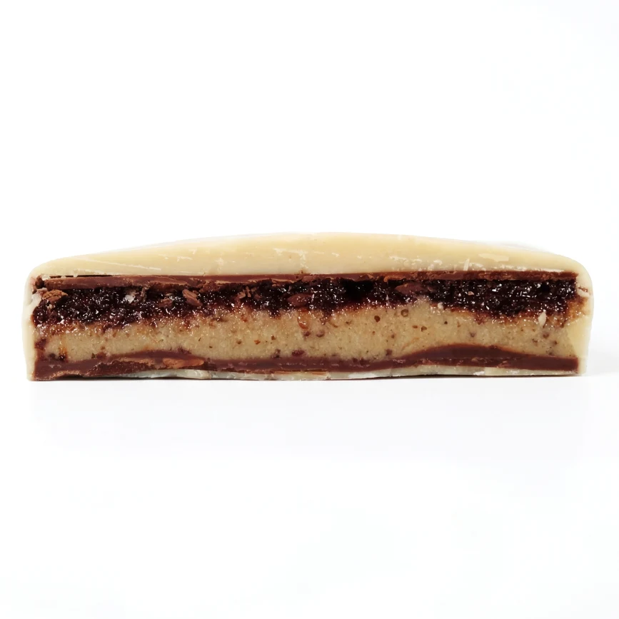 Das Ergebnis? Eine Schokolade, die Gegensätze vereint: Die erdige Würze von Mohnmiso trifft auf die lebendige Säure der Weichsel. Das Ganze wird von weißer Schokolade umarmt, was für den perfekten Schmelz sorgt.